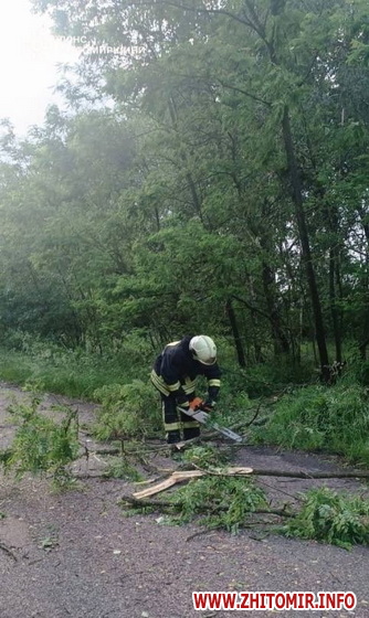 Також упродовж доби подібні аварійні роботи проводилися у Звягельському та Коростенському районах. Там загалом було прибрано з проїжджих частин доріг чотири повалених негодою дерева.