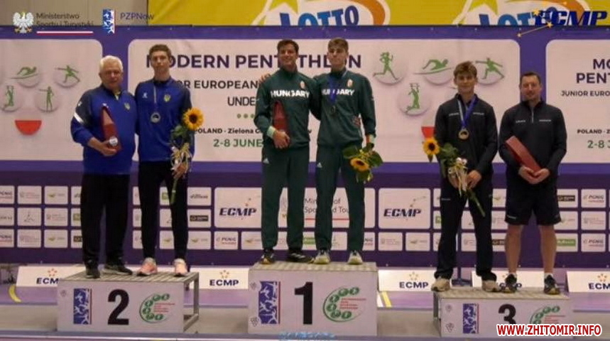 Спортсмен з Житомира Данило Сич став віцечемпіоном Європи з сучасного п’ятиборства серед юніорів. Крім того, команда у складі трьох спортсменів, виборола «золото» чемпіонату.
