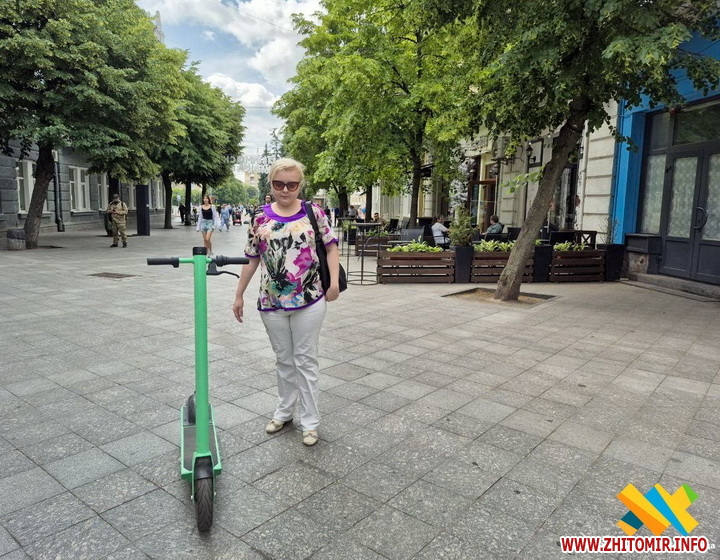 Пані Ірина також має інвалідність по зору першої групи. Щойно на Михайлівській вона йшла обережно і помітила самокат буквально в останній момент.