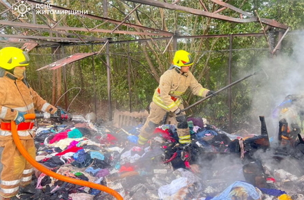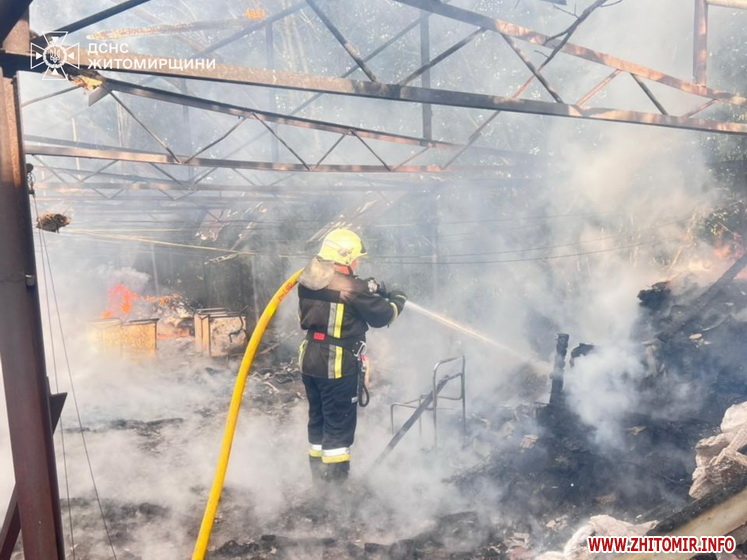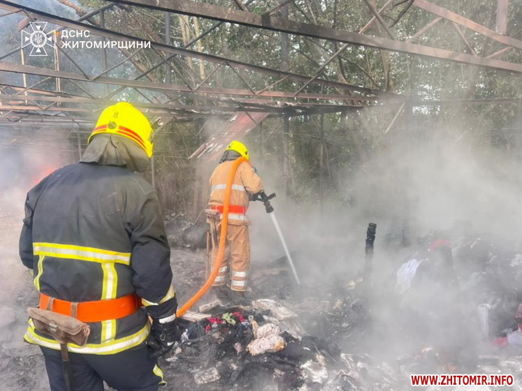 Нагадаємо, 5 червня пресслужба ГУ ДСНС України у Житомирській області повідомила, що у селі біля Житомира 12 рятувальників гасили пожежу в будівлі, де зберігали побутові речі.
