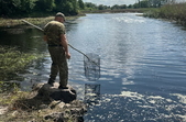 «Державні інспектори з охорони навколишнього природного середовища Поліського округу продовжують проводити рейдові заходи щодо виявлення порушень правил любительського рибальства на Житомирщині. Так, на річці Смолка екоінспектори виявили та вилучили одну безхазяйну сітку довжиною близько 45-50 метрів та 2 ятери. Також двох осіб було притягнуто до адміністративної відповідальності за частиною 3 статті 85 КУпАП», - йдеться у повідомленні.