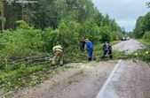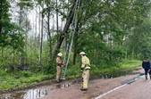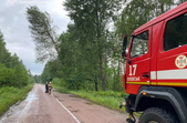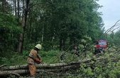 «27 червня до Служби порятунку «101» надійшло повідомлення про те, що у с. Раковичі Житомирського району впало дерево та пошкодило господарчу споруду. Бійці ДСНС допомогли розрізати повалене дерево та відтягнути його. Крім того, у с. Сущани Коростенського району рятувальники зрізали два аварійних дерева, падіння яких спричинило брозрив електропроводів, у результаті чого три населених пункти могли залишитись без світла», - йдеться в повідомленні.
