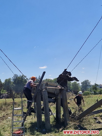 За інформацією АТ «Житомиробленерго», станом на 12.00 3 липня залишається відключеною 1 ділянка ПЛ-10 кВ, 5 трансформаторних підстанцій. Додатково відновили електропостачання в 93 домівки.