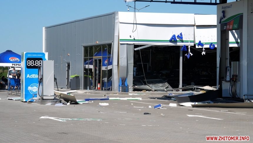 Як повідомляє Житомир.info, увечері 2 липня близько 18.00 у передмісті Житомира на об’їзній в напрямку Києва стався сильний вибух. Навколо все було в диму, пошкоджені АЗС, будинки, транспорт. Рух ускладнений, прибули пожежники та «швидкі». Міська рада повідомила, що на трасі в напрямку Києва, за кільцевою дорогою, стався вибух на автозаправці. Причини інциденту наразі встановлюються. На місце оперативно виїхали всі екстрені служби, поліція, рух транспорту був перекритий.