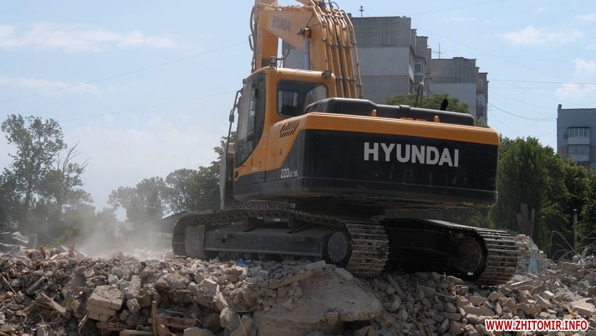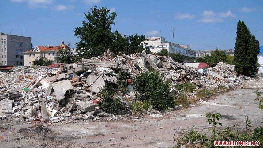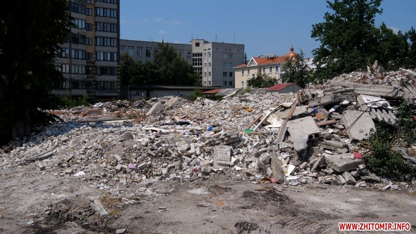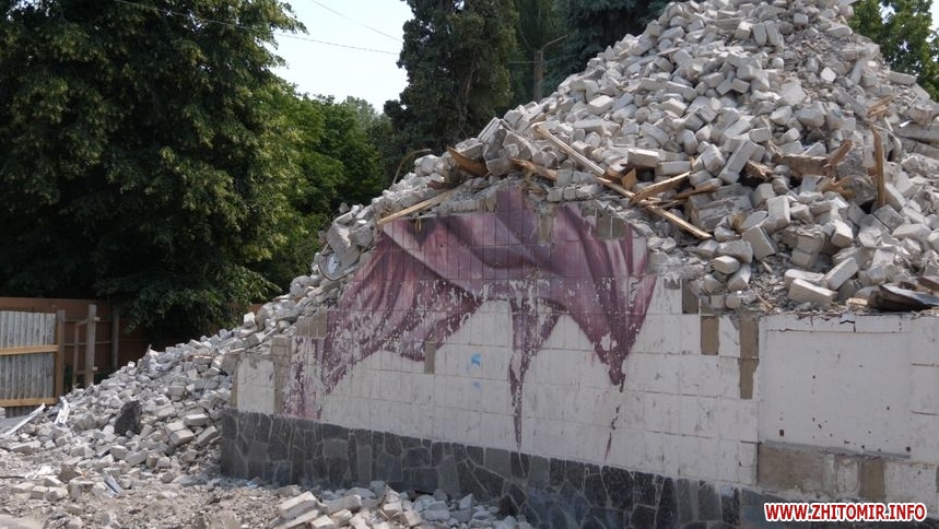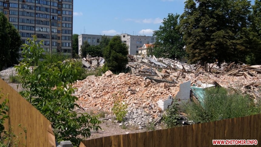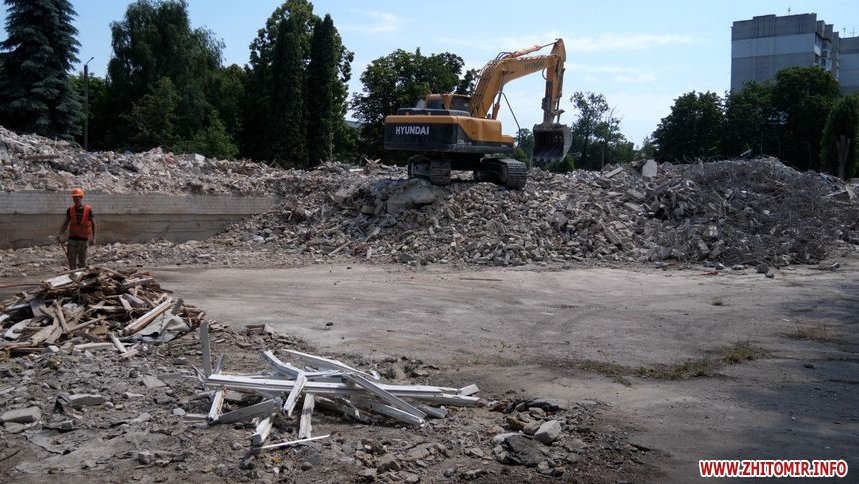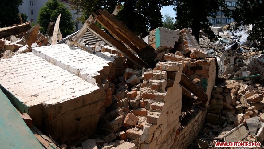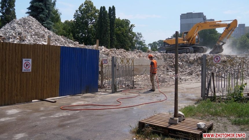 Станом на 4 липня: дах, перекриття, стіни знесли. На території працює техніка, вивозять будівельне сміття. Зазначимо, що деякі будівельні матеріали передадуть комунальним підприємствам Житомира, а цеглу утилізують. На паркані, який огороджує територію будівлі повісили таблиці «Небезпечна зона», «Вхід заборонено».