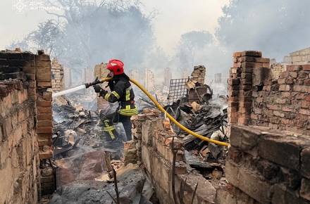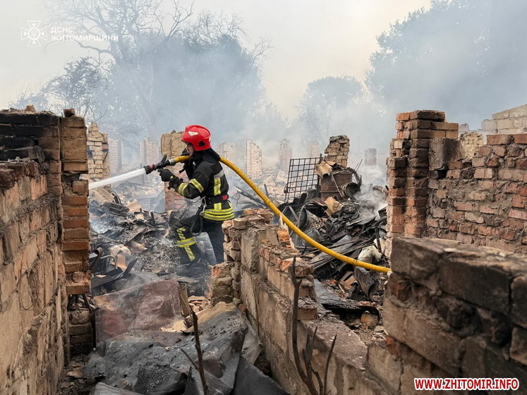 Під час ворожої атаки в ніч на 9 липня 2025 року у Житомирській області є пошкоджені будівлі, виникли пожежі.