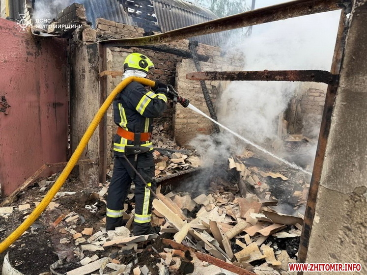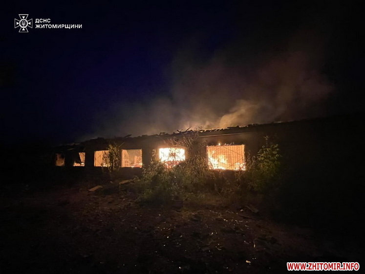 Головне управління ДСНС у Житомирській області інформувало, що вночі у Житомирському районі внаслідок ворожих обстрілів виникли пожежі у двох населених пунктах.