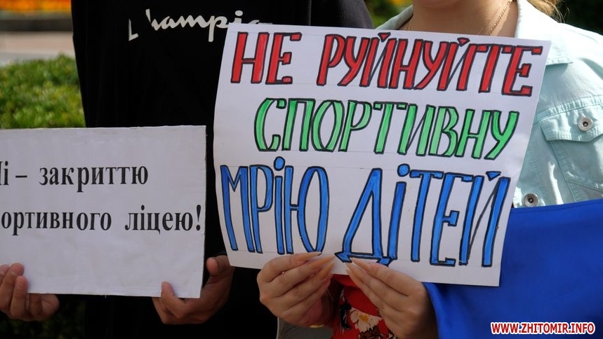 Перед початком позачергової сесії Житомирської облради 10 липня на майдані Корольова з плакатами зібралися учні, батьки та працівники Бердичівського спортивного ліцею.