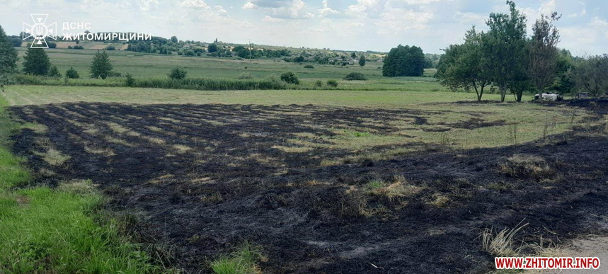Окремо зафіксували випадок займання пшеничного поля на корені в Коростенському районі. Вогонь вчасно загасили місцеві жителі, підрозділи ДСНС не залучалися.