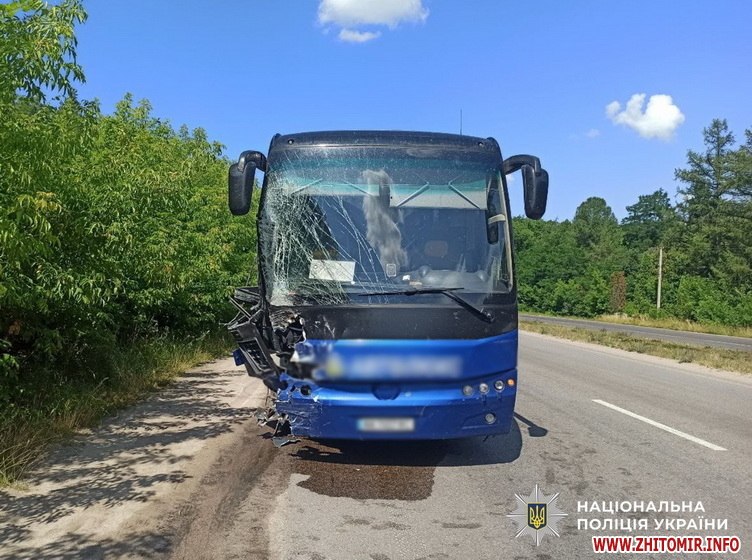 «Дорожньо-транспортна пригода сталася 13 липня близько 9:30 у селі Довжику. На місці події працювала слідчо-оперативна група Житомирського районного управління поліції №1. Попередньо, відбулося зіткнення рейсового автобуса Temza, яким керував 57-річний житель Запоріжжя, та попутного автомобіля Volkswagen, що зупинився на заборонний сигнал світлофора», - йдеться у повідомленні.