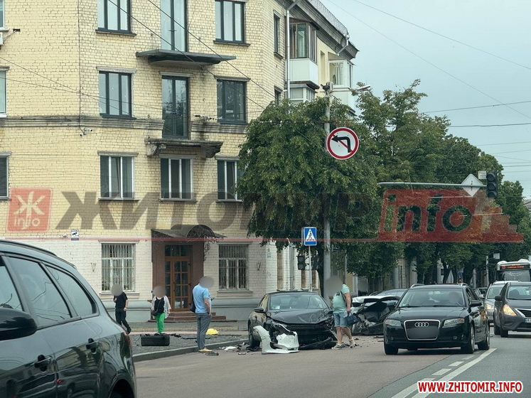 Як повідомляв Житомир.info, вранці 23 червня 2025 року на перехресті поблизу бульвару у Житомирі зіткнулися 3 автівки, один з автомобілів в'їхав у дорожню огорожу. Рух транспорту був частково ускладнений вулицею Велика Бердичівська. Один з водіїв виїхав на «червоне» світло.