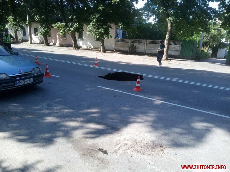 У Житомирі на вулиці Фещенка-Чопівського провалився асфальт, тролейбуси за маршрутом 4А тимчасово курсуватимуть по Великій Бердичівській.