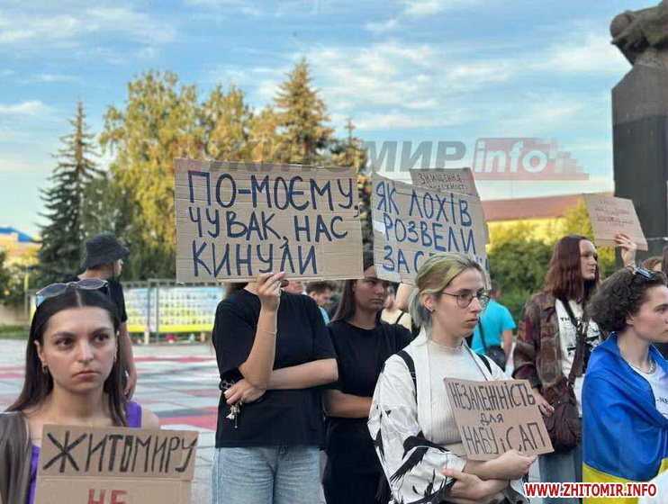 23 липня до акцій протесту приєднався Житомир: кілька сотень люди зібралися на майдані Корольова. 24 липня акції протесту продовжувалися (див. фото нижче).