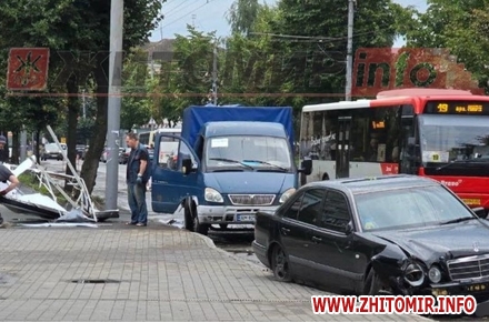 Вранці 28 липня на вул. Хлібна у Житомирі внаслідок ДТП пошкоджений сітілайт. Поруч стоїть автіка.