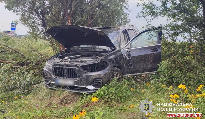 «Повідомлення про дорожньо-транспортну пригоду, що сталася на трасі Київ-Чоп поблизу с. Кущове Звягельського району, надійшло до поліції вдень 28 липня. За попередніми даними, близько 14:40 автомобіль BMW X7 під керуванням 35-річної жительки Київщини з’їхав у кювет. У результаті транспортний засіб перекинувся», - йдеться у повідомленні.