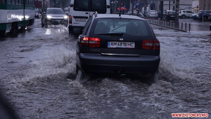 Від ранку 29 липня у Житомирі ллє дощ. І вже традиційна, на жаль, ситуація для нашого міста – вулиці затопило. Скоріш за все, зливостоки не встигають приймати воду.