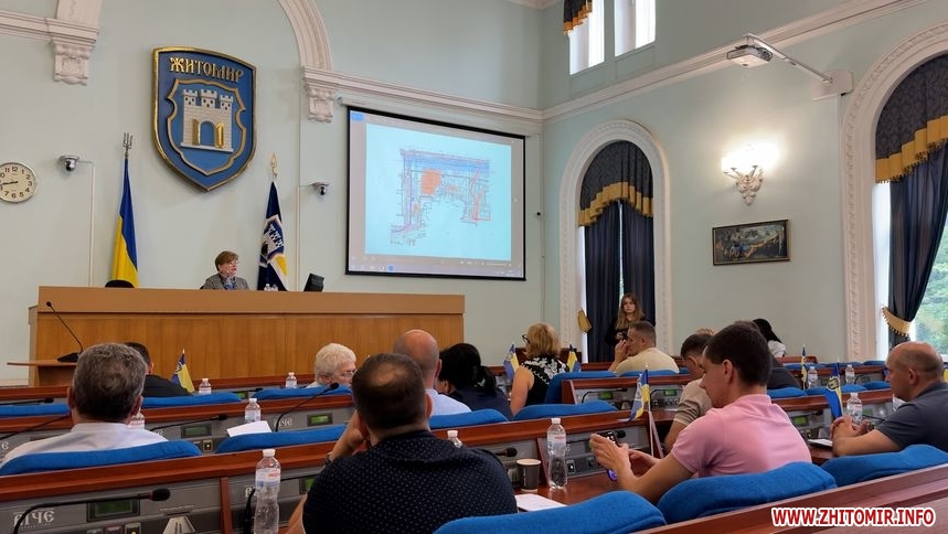 «Перше питання про затвердження технічної документації із землеустрою щодо поділу земельної ділянки. Проєкт рішення виносився на розгляд постійних комісій. Комісія з бюджету підтримала вказаний проєкт рішення. Мені було завдання підготувати інформацію, чи будуть біля ветеранського простору укриття та дотримані безпекові питання. Два прямокутники на презентації – це два протирадіаційні укриття, кожне з них має місткість 46 осіб. Одночасно у ветеранському просторі може перебувати до 80 людей. Безпекові питання будуть дотримані», – говорить секретар Житомирської міської ради Галина Шиманська.