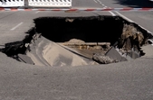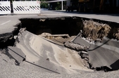 Минулого тижня на цій вулиці також провалився асфальт, ту ділянку відремонтували, а два нових провалля утворилися поруч.