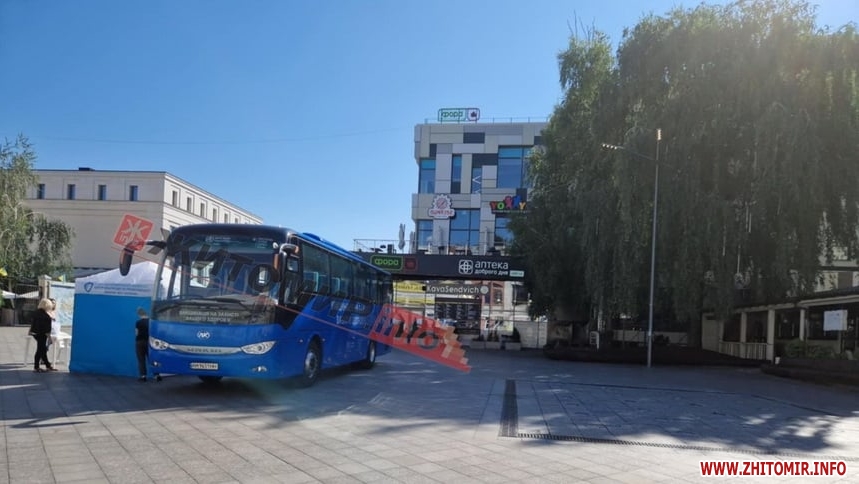 Вранці 1 серпня у Житомирі на пішохідній вулиці Михайлівській містяни побачили автобус з написом «Вакцинація на захисті вашого здоров’я».
