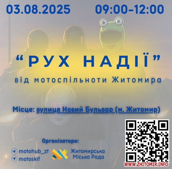У Житомирі 3 серпня відбудеться благодійний захід від мотоспільноти Житомира — «Рух надії», на якому будуть збирати гроші на слуховий апарат для 9-річного хлопчика.