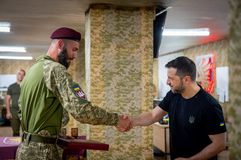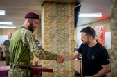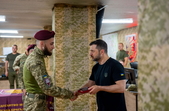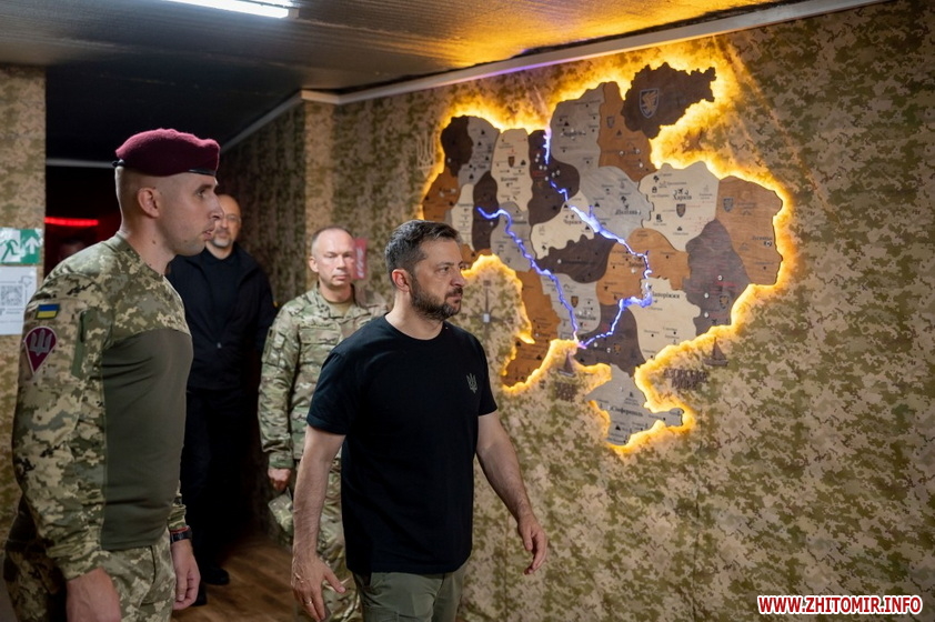 «Президент України Володимир Зеленський разом із Головнокомандувачем ЗСУ Олександром Сирським, міністром оборони Денисом Шмигалем і командувачем Десантно-штурмових військ Збройних Сил Олегом Апостолом зустрівся з воїнами 95-ї окремої десантно-штурмової Поліської бригади в пункті управління підрозділу. Глава держави заслухав доповідь командира бригади Костянтина Ревуцького про обстановку в смузі відповідальності його підрозділу», - йдеться в повідомленні.