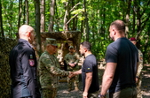 Разом із воїнами Глава держави вшанував хвилиною мовчання памʼять полеглих українських захисників.
