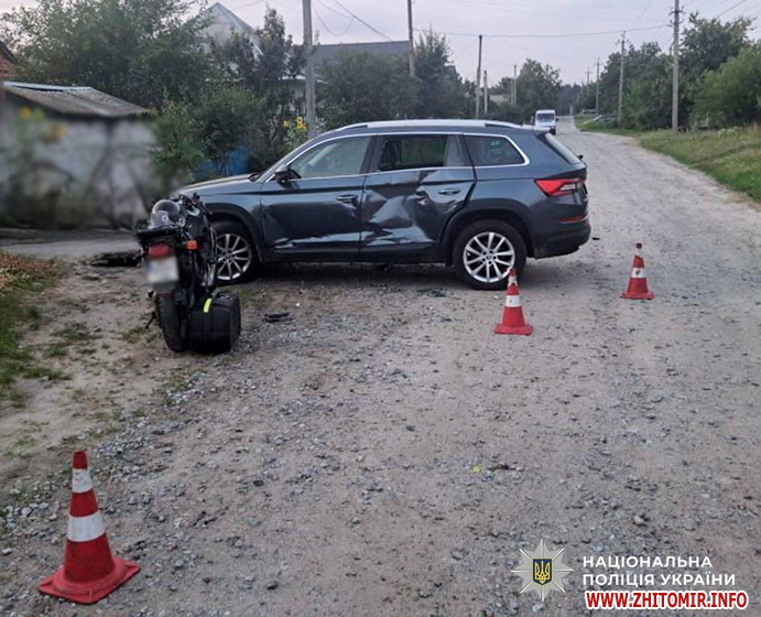Попередньо, близько 19:20 сталося зіткнення між автомобілем Skoda Kodiaq, під керуванням 56-річного бердичівлянина, який здійснював маневр розвороту, та мотоциклом Honda.