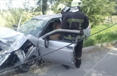 «9 серпня по обіді в с. Кашперівка Житомирського району рятувальники надавали допомогу водію легковика, якого внаслідок зіткнення з електроопорою заблокувало в пошкодженій автівці. Бійці ДСНС за допомогою гідравлічного розтискача зняли двері біля водія, завдяки чому медики змогли надати травмованому невідкладну допомогу. Після цього рятувальники транспортували його до карети «швидкої», якою його госпіталізували до лікувального закладу», - йдеться у повідомленні.