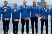 - Золото - 10-місний човен, гонка-переслідування на 2000 метрів.