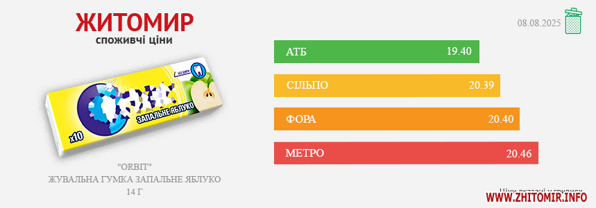 Моніторинг здійснено на основі інформації, отриманої за методом контрольної закупки 08.08.2025 р. у місцях продажу: АТБ, пр. Миру, 15 А, Фора, вул. Київська, 106, Метро, вул. Ватутіна, 55-в, Сільпо, вул. Житній ринок, 1