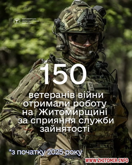 Як повідомляв Житомир.info, за 9 місяців, з січня по жовтень 2024 року, 142 ветерани війни отримали роботу у Житомирській області, більшість з них – у Житомирському районі.
