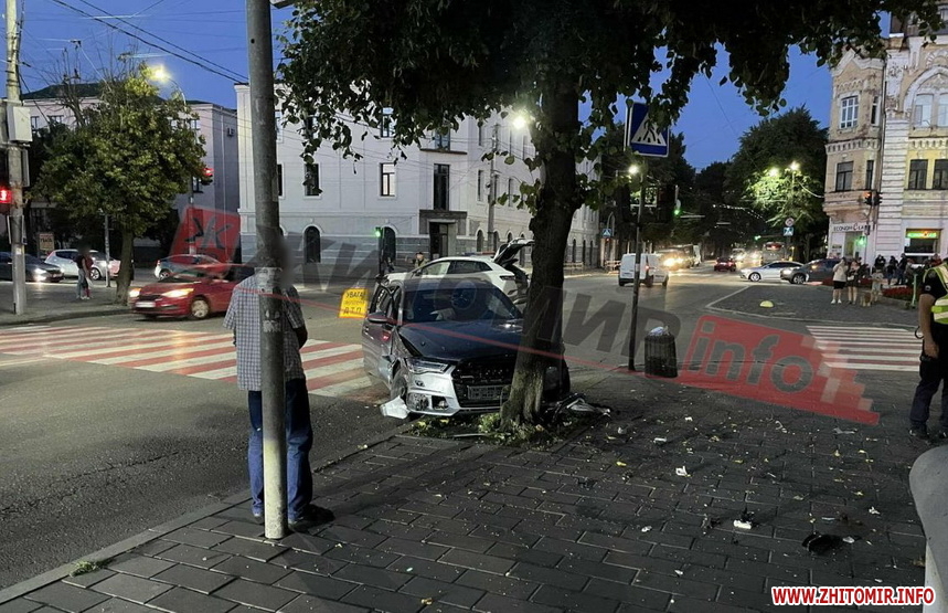 Ввечері 13 серпня на перехресті вулиць Велика Бердичівська та Старий бульвар зіткнулися Audi та Volkswagen, внаслідок чого Audi в’їхала в електроопору. Попередньо, без постраждалих.