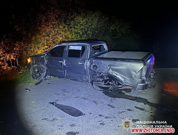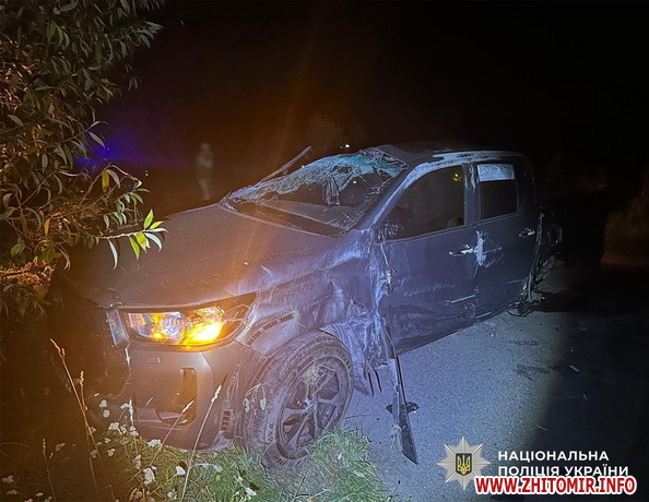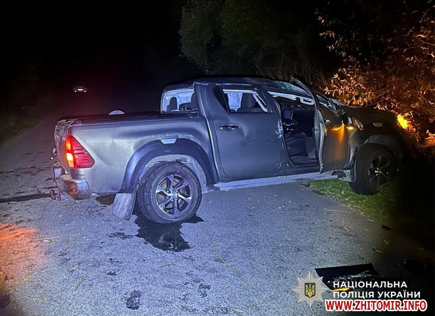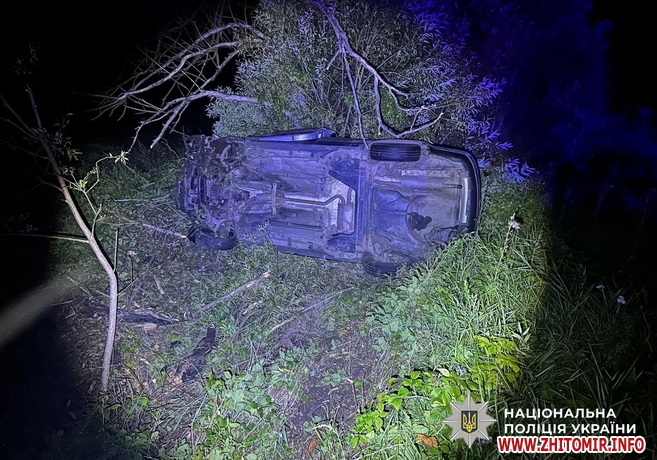 У ДТП в Житомирському районі травмувалися троє людей, поліцейські затримали нетверезого водія. Дорожньо-транспортна пригода сталася 14 серпня близько 21:15 поблизу селища Вакуленчук Чуднівської громади. На місці події працювала слідчо-оперативна група відділення поліції №2 (м. Чуднів) Житомирського райуправління №1.