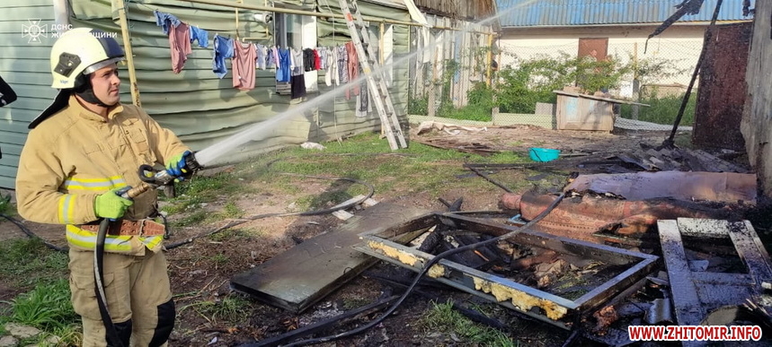 17 серпня о 17:42 до Служби порятунку «101» надійшло повідомлення про пожежу на території приватного домоволодіння в м. Коростень.