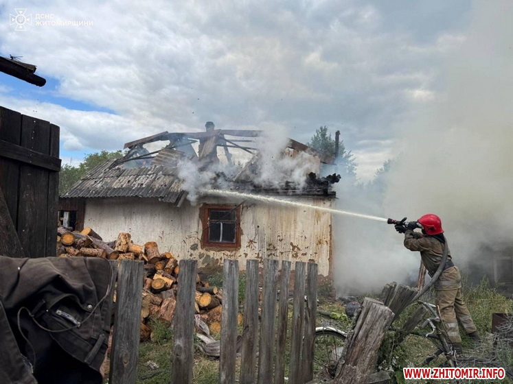 «19 серпня о 17:14 до Служби порятунку «101» надійшло повідомлення про пожежу на території приватного домоволодіння в с. Славів Житомирського району. На місці події бійці ДСНС встановили, що вогнем вже знищена дерев'яна господарська будівля та він поширився на дах ще однієї будівлі. Існувала загроза перекидання полум’я на розташований поруч житловий будинок та гараж. Ускладнювало гасіння захаращеність території», - йдеться в повідомленні.