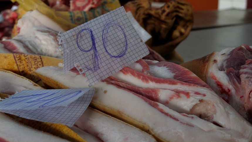 «Спинка коштує 300 грн, крижова частина 250 грн. Люди купують, але мало. Цього місяця більш сало купували ніж м'ясо», – каже продавчиня Зоя.