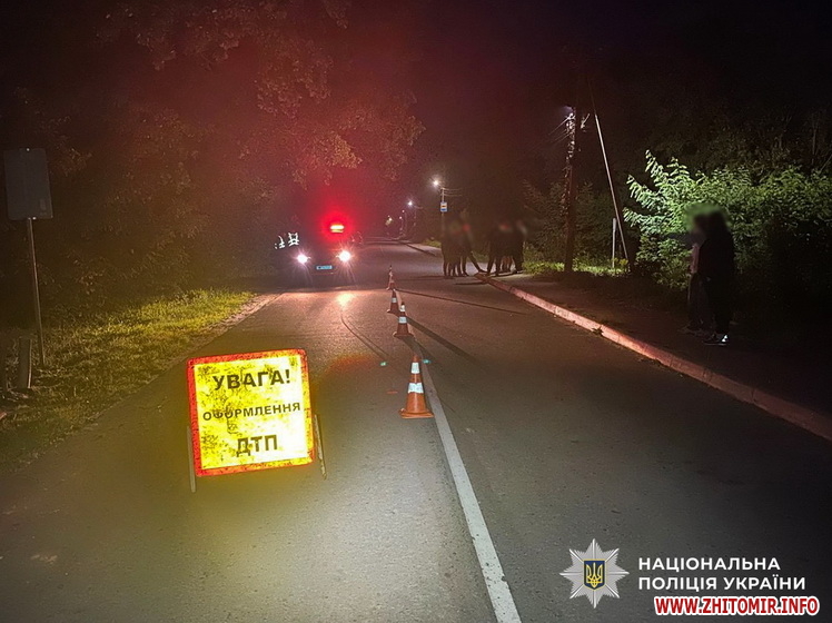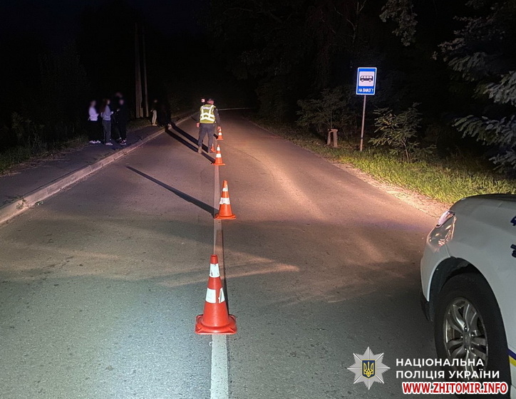 Наразі правоохоронці встановлюють усі обставини ДТП та звертаються до громадян: якщо ви стали свідками події або володієте інформацією, що може допомогти слідству, просимо звернутися до Житомирського районного управління поліції №2 (м. Житомир вул. Покровська 11-А) чи зателефонувати за номером 098-951-04-24 або 102.