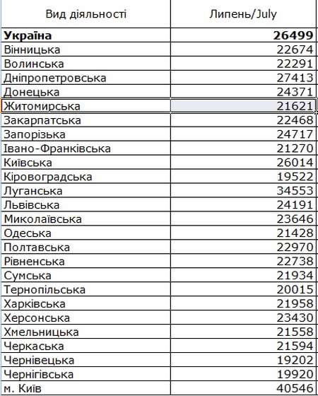 Зауважимо, що середня зарплата в липні у Житомирській області становила 21 621 грн, менше – ще у восьми областях України.