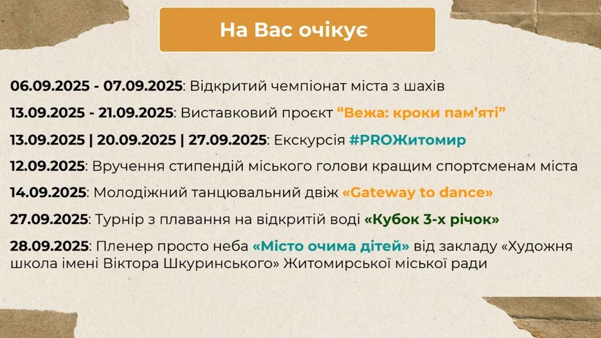 Культурні, освітні, спортивні та національно-патріотичні заходи організують у Житомирі до Дня міста і триватимуть вони протягом вересня.