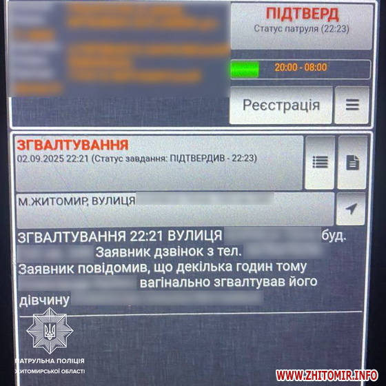 Про це 3 вересня 2025 року повідомила патрульна поліція Житомирської області.