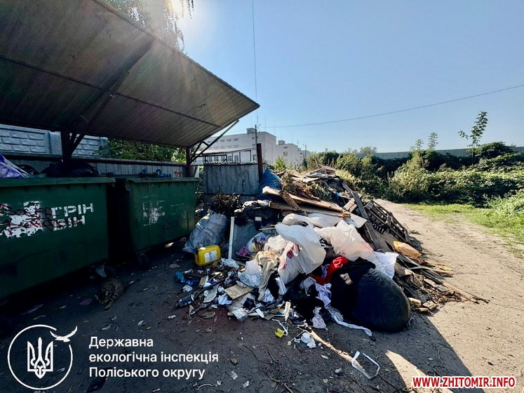 «8 вересня 2025 року державні інспектори з охорони навколишнього природного середовища Поліського округу, реагуючи на інформацію в соціальних мережах, здійснили обстеження території по вулиці Новопівнічній у місті Житомир. Під час перевірки факт створення стихійного сміттєзвалища поблизу контейнерного майданчика для збору відходів підтвердився», - йдеться у повідомленні.