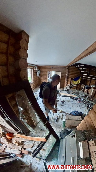 Про пошкодження свого будинку, який знаходиться в Оліївській громаді Житомирського району, вранці 10 вересня повідомив ветеран АТО, волонтер Олександр Швецов.