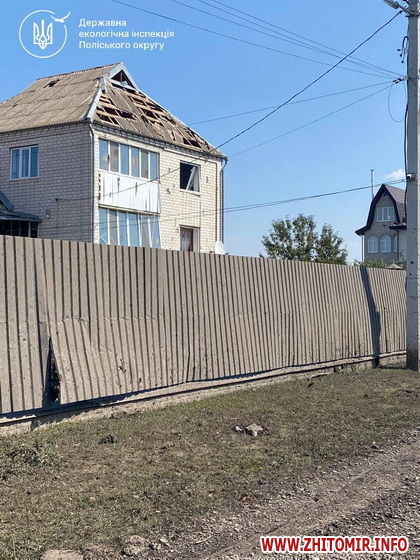 «10 вересня 2025 року внаслідок атаки російської армії у Бердичеві були зруйновані виробничі цехи одного з приватних підприємств. Постраждали також житлові будинки – в них пошкоджені вікна та двері, знесені дахи і паркани. Державні інспектори з охорони навколишнього природного середовища Поліського округу виїхали у м.Бердичів та працюють на місці ворожого влучання», - йдеться в повідомленні.