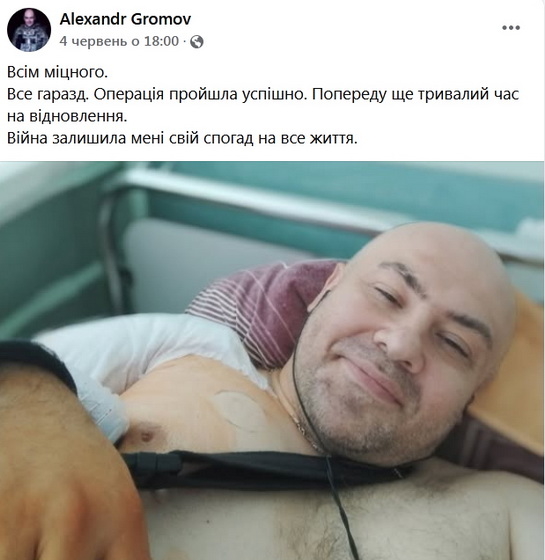 Судячи з оприлюднених шевронів та фото у формі, Громов з лютого 2024 року служив у 3-му механізованому батальйоні Окремої президентської бригади імені гетьмана Богдана Хмельницького. Попри військову службу Олександр Громов не зупиняв активну громадську діяльність на своїй Facebook-сторінці, а на початку червня 2025 року оприлюднив публічний допис про те, що операція пройшла успішно й «війна залишила мені свій спогад на все життя».