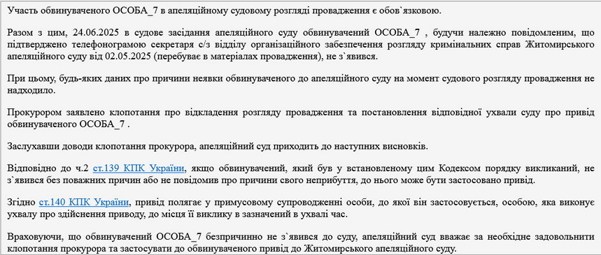 Скриншот з ухвали Житомирського апеляційного суду від 24.06.2025
