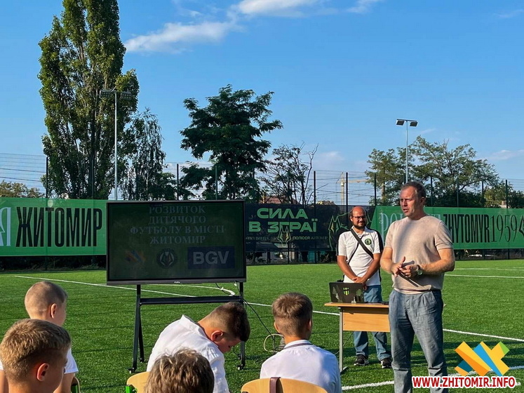 «У Житомирі презентували розвиток дитячого футболу. У місті футболом займається понад 2000 дітей, і ця кількість постійно зростає. Для юних спортсменів створюються належні умови: лише за останні два роки у ліцеях №5, №16 та №34 з’явилися сучасні футбольні поля. На базі цих трьох ліцеїв функціонують районні академії ФК «Полісся», - йдеться в повідомленні.