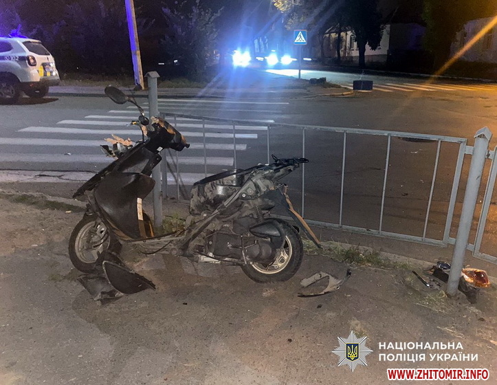 «Дорожньо-транспортна пригода сталася 11 вересня близько 20:30 на перехресті вулиць Вінниченка та Шевченка. За попередньою інформацією, мопед Suzuki Lets зіткнувся з автомобілем Opel Vivaro, за кермом якого перебував 39-річний малинець. Водночас на двоколіснику їхали двоє місцевих жителів, віком 20 та 25 років», - йдеться у повідомленні.