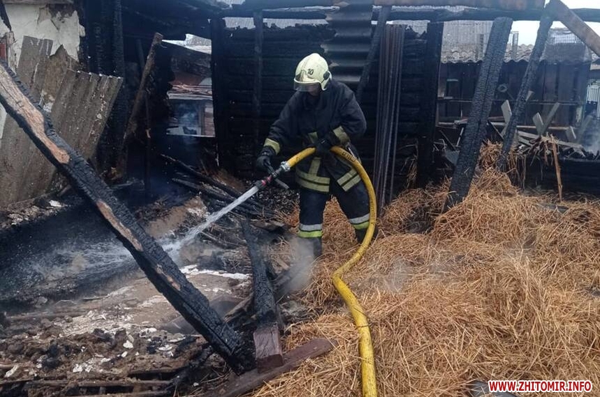 «Подія сталася сьогодні вдень у приватному домогосподарстві у с. Токарів Ярунської громади Звягельського району. Через віддаленість місця події від пожежно-рятувального підрозділу по прибуттю вогнем вже була знищена половина дерев’яної господарчої будівлі, а інша - повністю охоплена полум’ям», - йдеться у повідомленні.