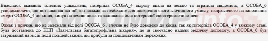 Як повідомляв Житомир.info, 7 грудня 2024 року у Звягелі затримали чоловіка, який під час сварки завдав ножових поранень своїй співмешканці. Жінка потрапила жінка у реанімацію.