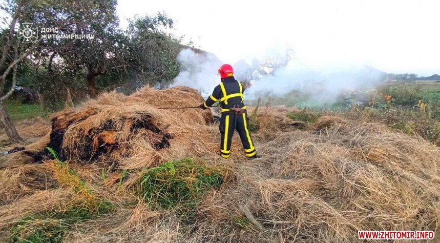 «Сьогодні під ранок вогнеборці виїхали на гасіння займання копиці сіна. Подія сталася в с. Комарівка Житомирського району. Завдяки діям бійців ДСНС уже менш ніж за годину пожежу вдалося ліквідувати. Вогонь знищив близько 2 тонн сіна, однак основну частину врятовано. Крім того, рятувальники не допустили поширення полум’я на сусідню господарську споруду та житловий будинок», - йдеться у повідомленні.